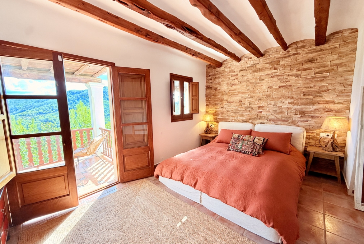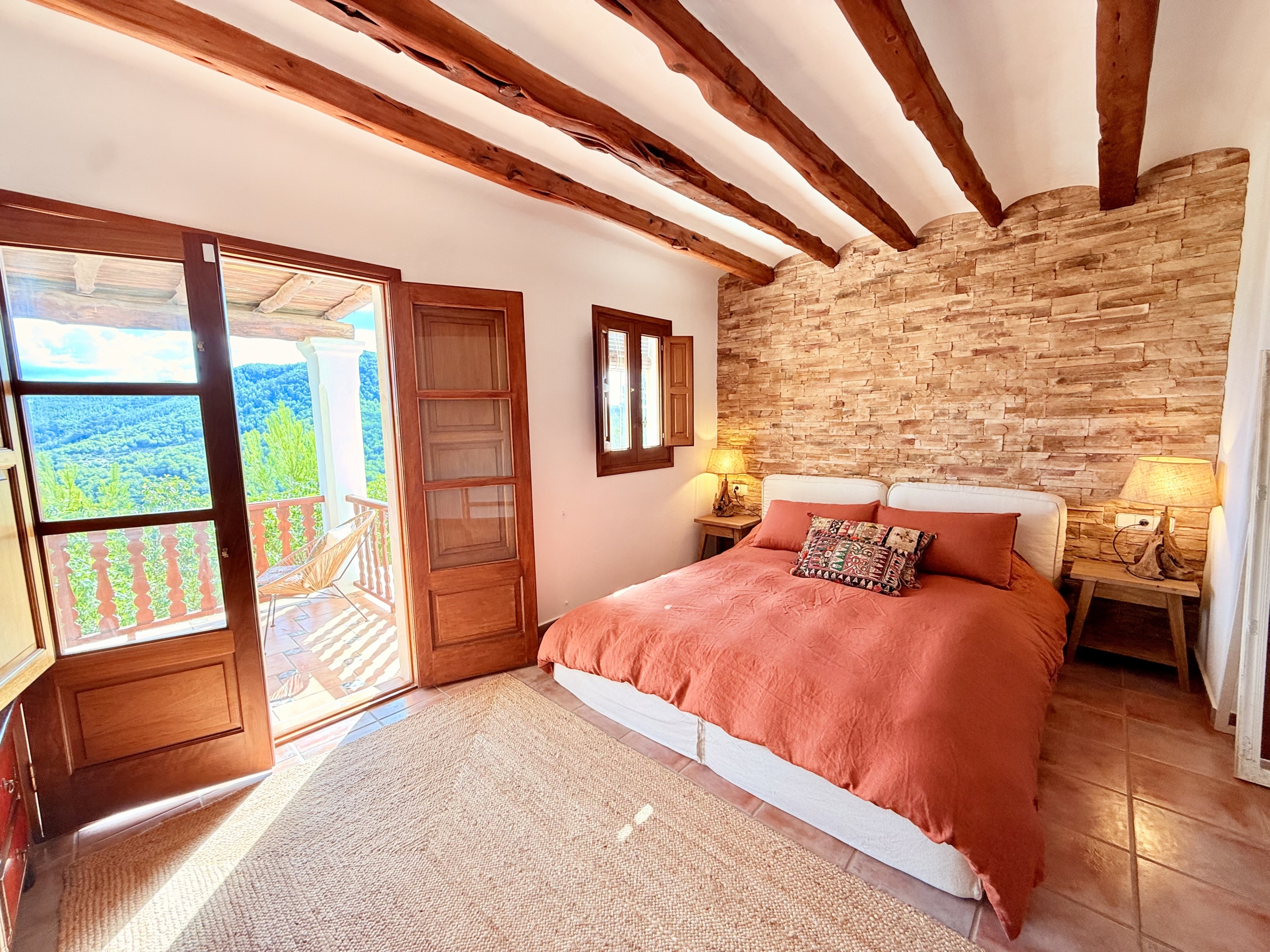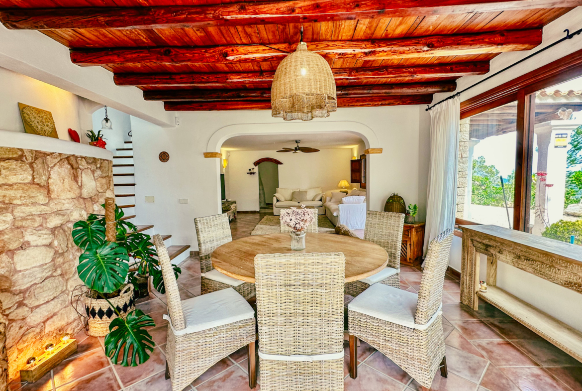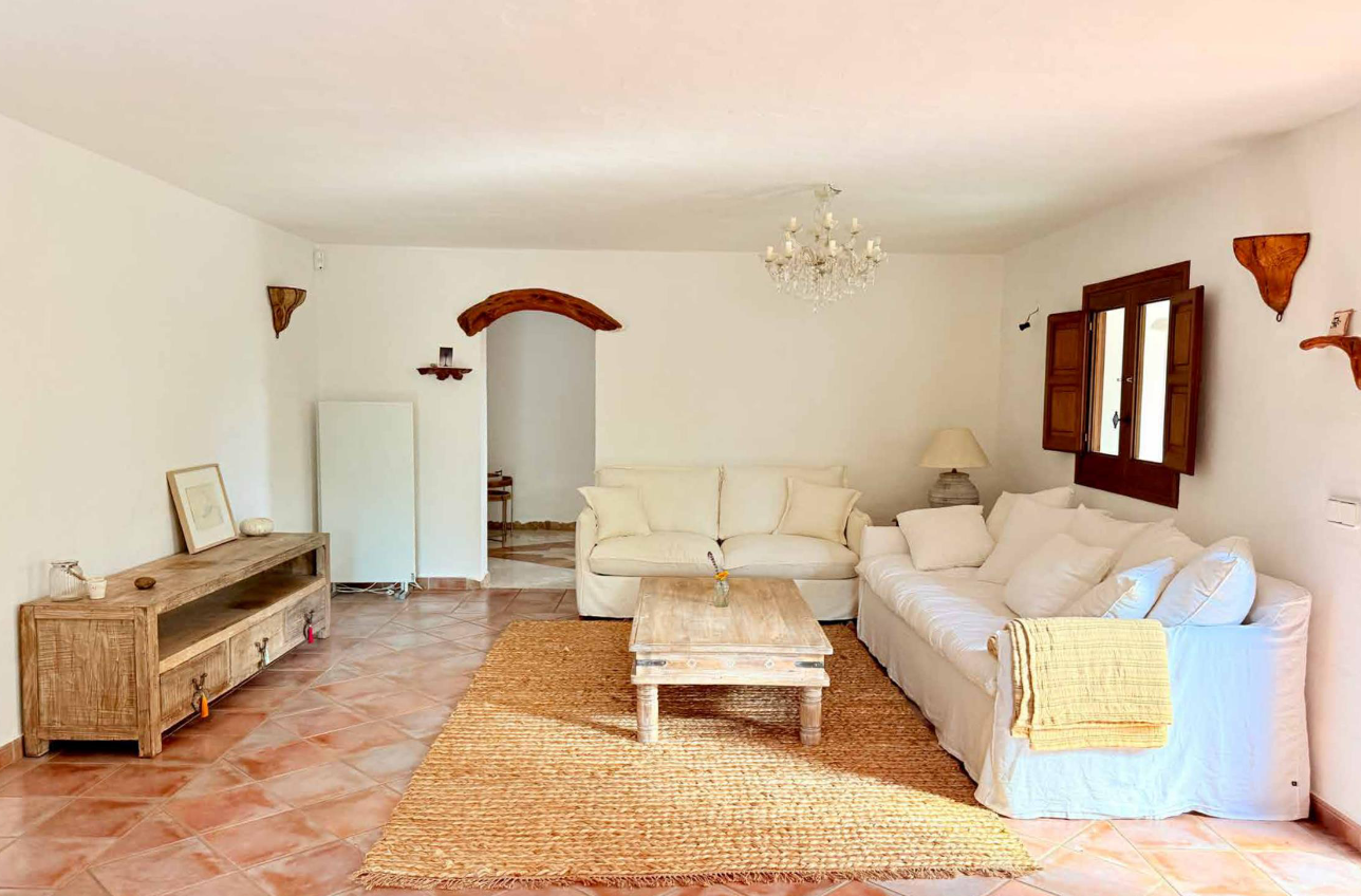 Positioned on an elevated mountainside, the finca enjoys a privileged setting with uninterrupted panoramic scenery stretching across the countryside towards the Mediterranean. The natural surroundings create a unique sense of seclusion, making it an ideal summer retreat or long-term rental in Ibiza.
