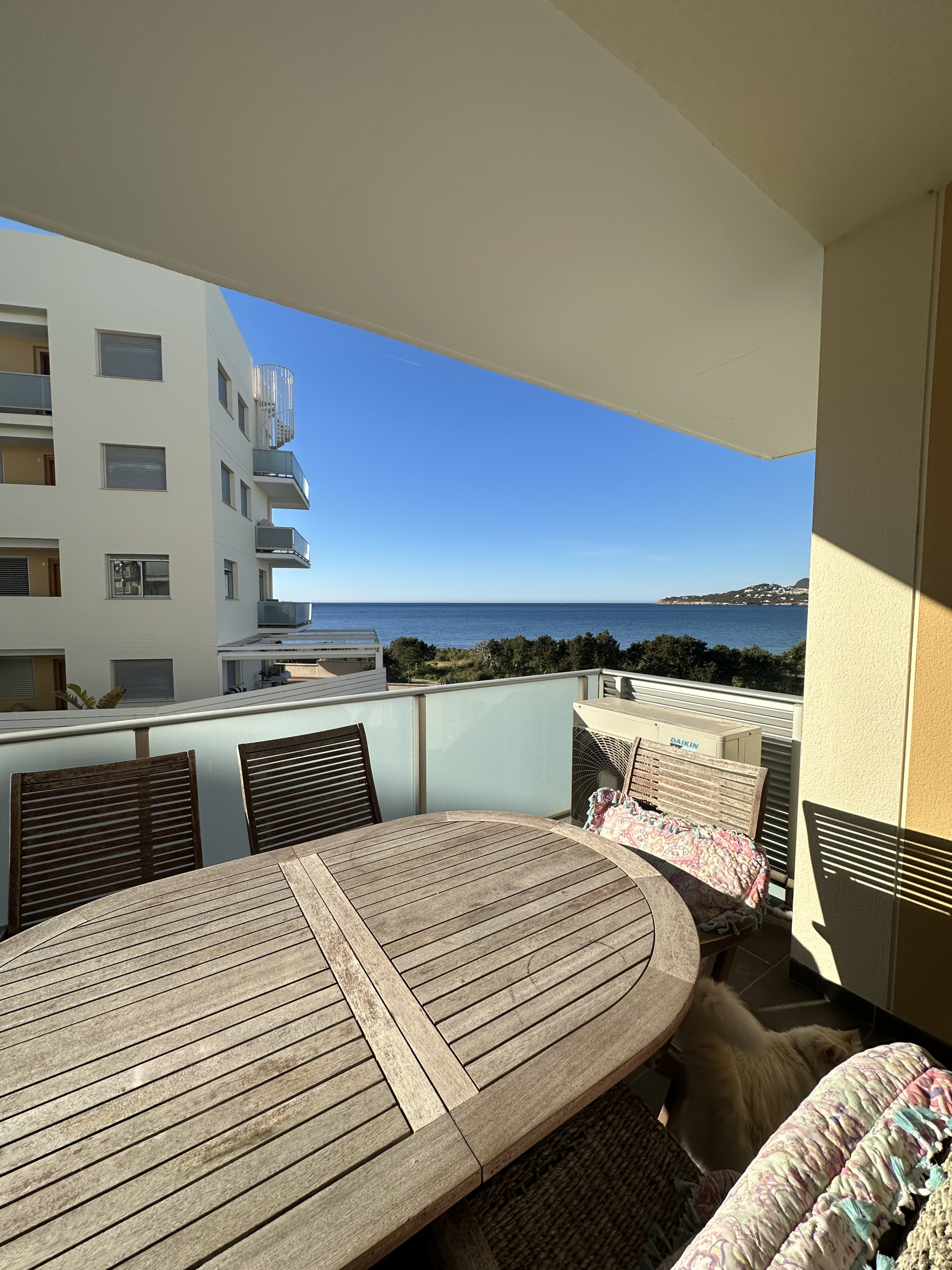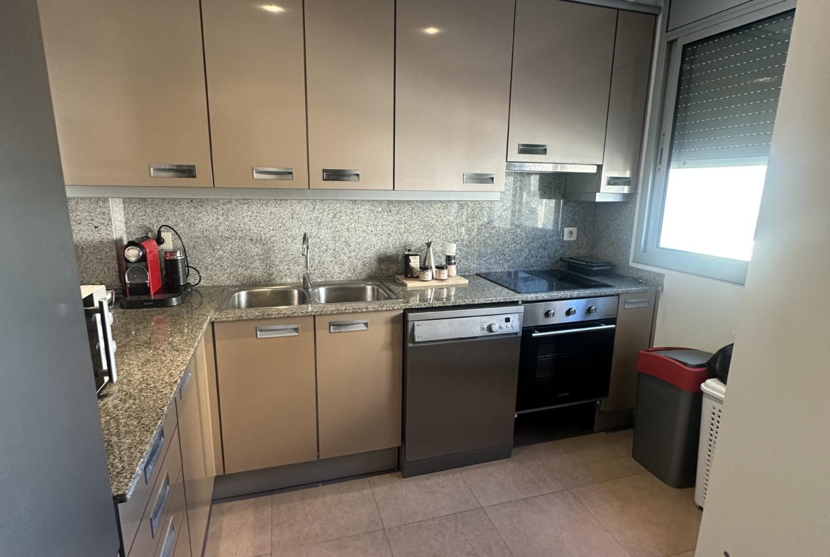 The apartment offers a private terrace with beautiful sea views and stunning sunsets. It also benefits from central air conditioning throughout the property. One private parking space is included.