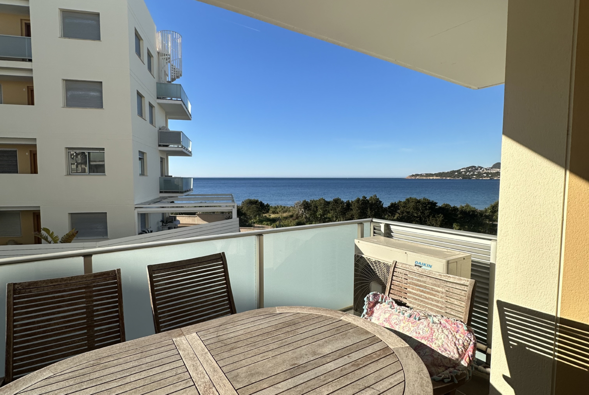 Spacious and bright two-bedroom apartment located in Cala de Bou, in the sought-after Sunset Strip area, with open sea views.