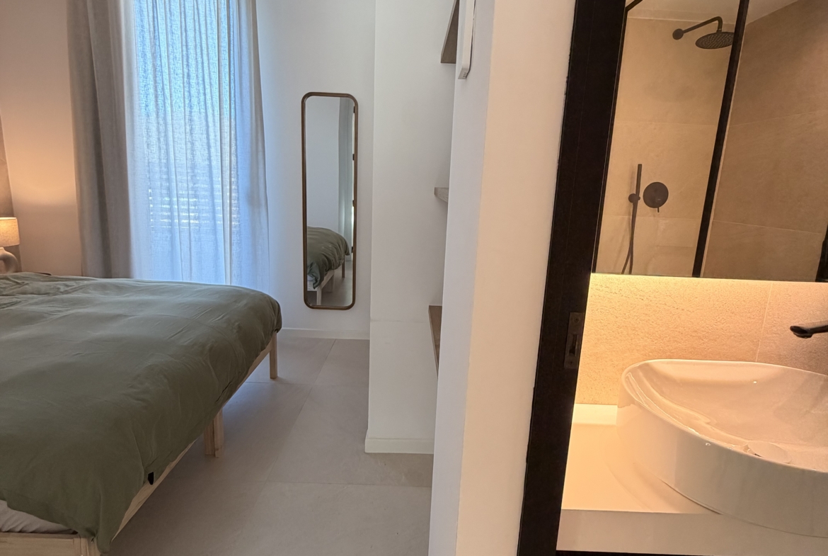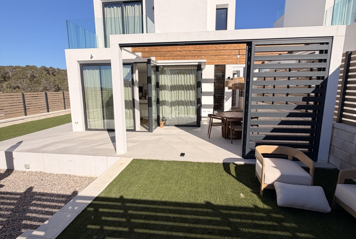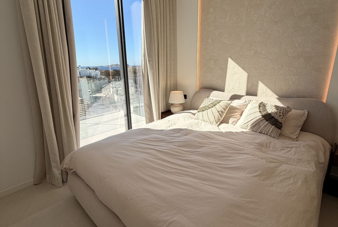 This newly built, modern 3-bedroom duplex is available for summer rental from May y to October, located in Cala Tarida, one of the island’s most beautiful beach areas. If you’re looking for the perfect summer getaway, this is the ideal option for you.