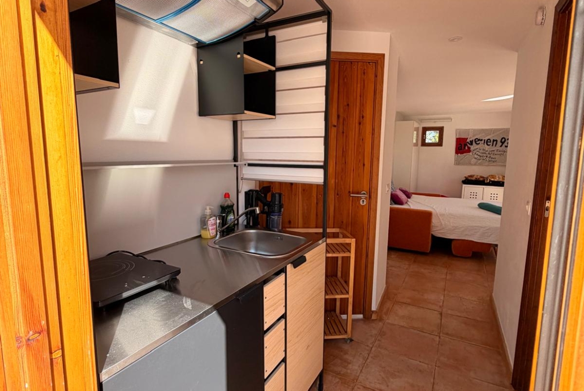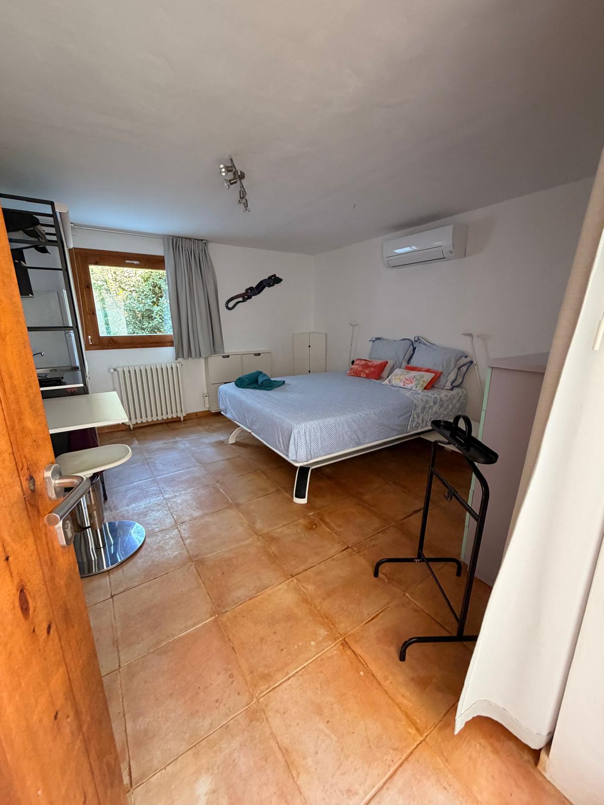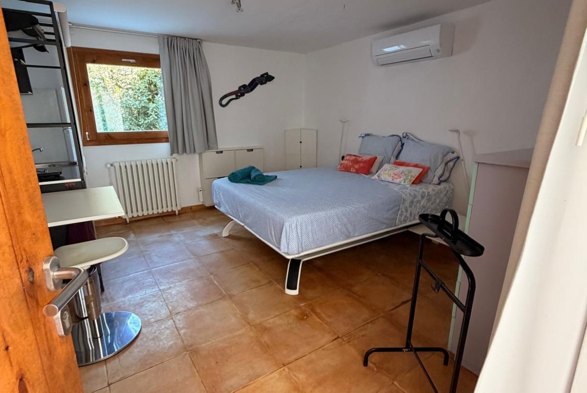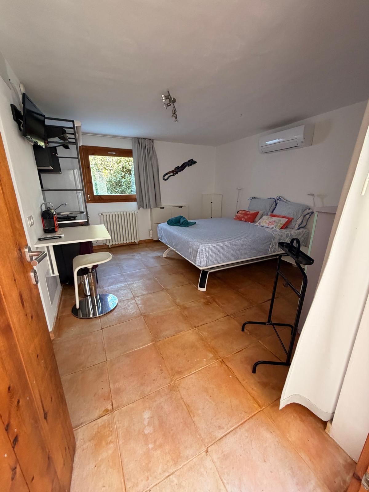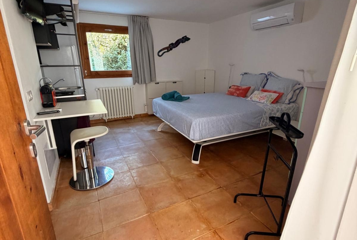 The studio combines comfort and functionality, featuring a dedicated workspace with high-speed Wi-Fi, ideal for working from home in an inspiring environment. A fully equipped modern kitchen allows for easy day-to-day living, while air conditioning ensures a cool and comfortable atmosphere during the warmer months.