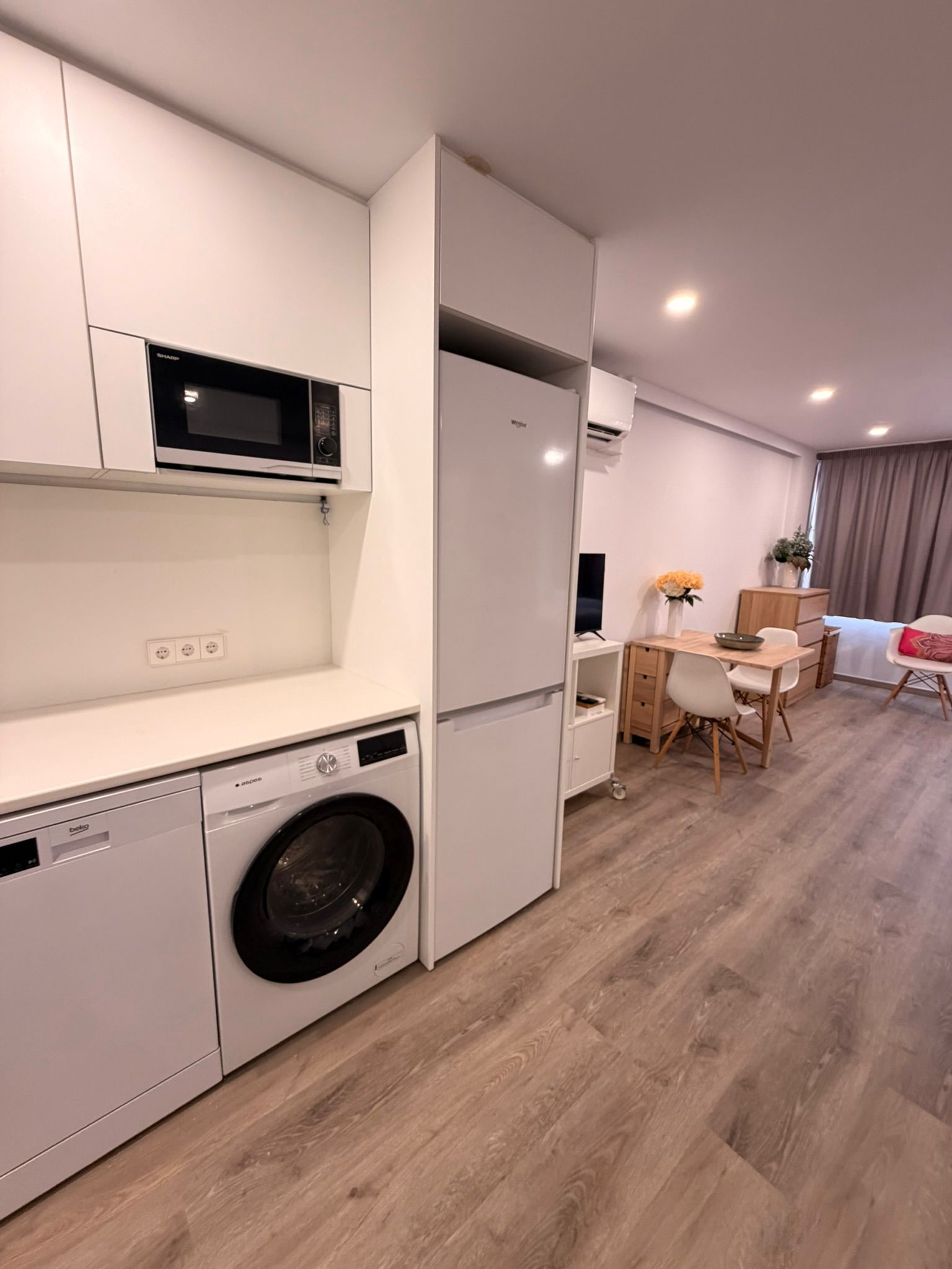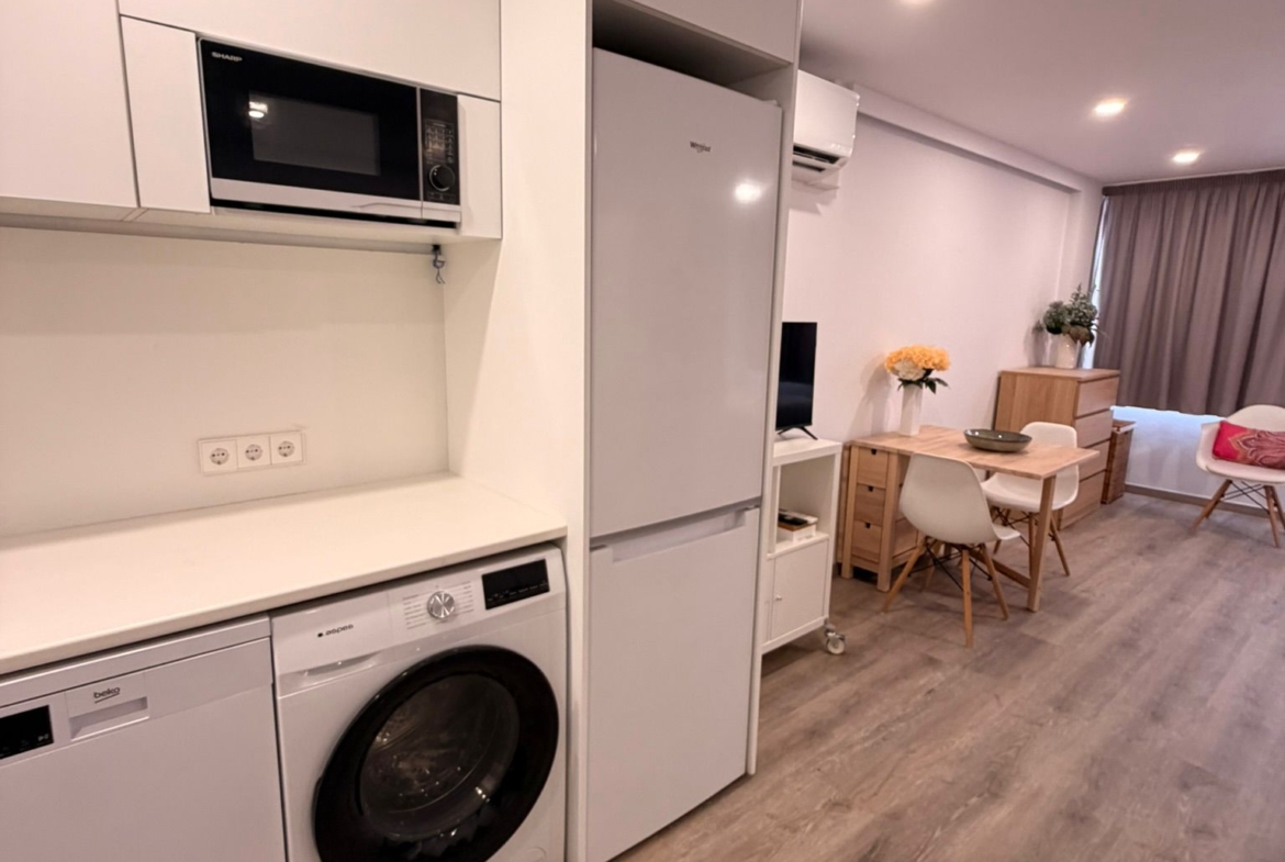 Enjoy summer 2026 in this cute studio, with 1-bath, living room, a fully equipped kitchen, washer and dryer, TV, AC, in Ibiza Town.