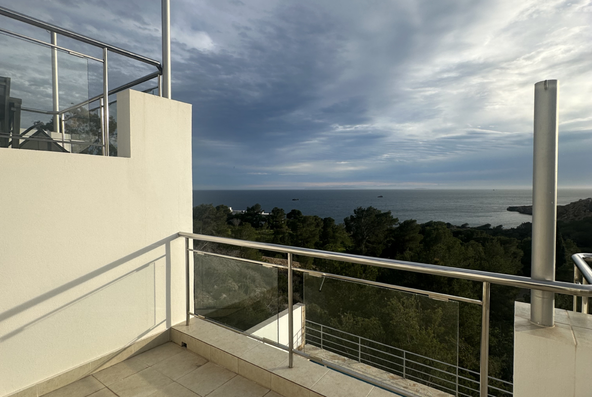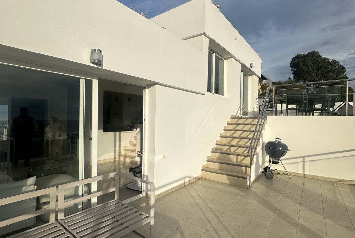The outdoor areas invite you to enjoy Ibiza’s Mediterranean lifestyle, with open views to the sea and plenty of space for dining, sunbathing, and entertaining.