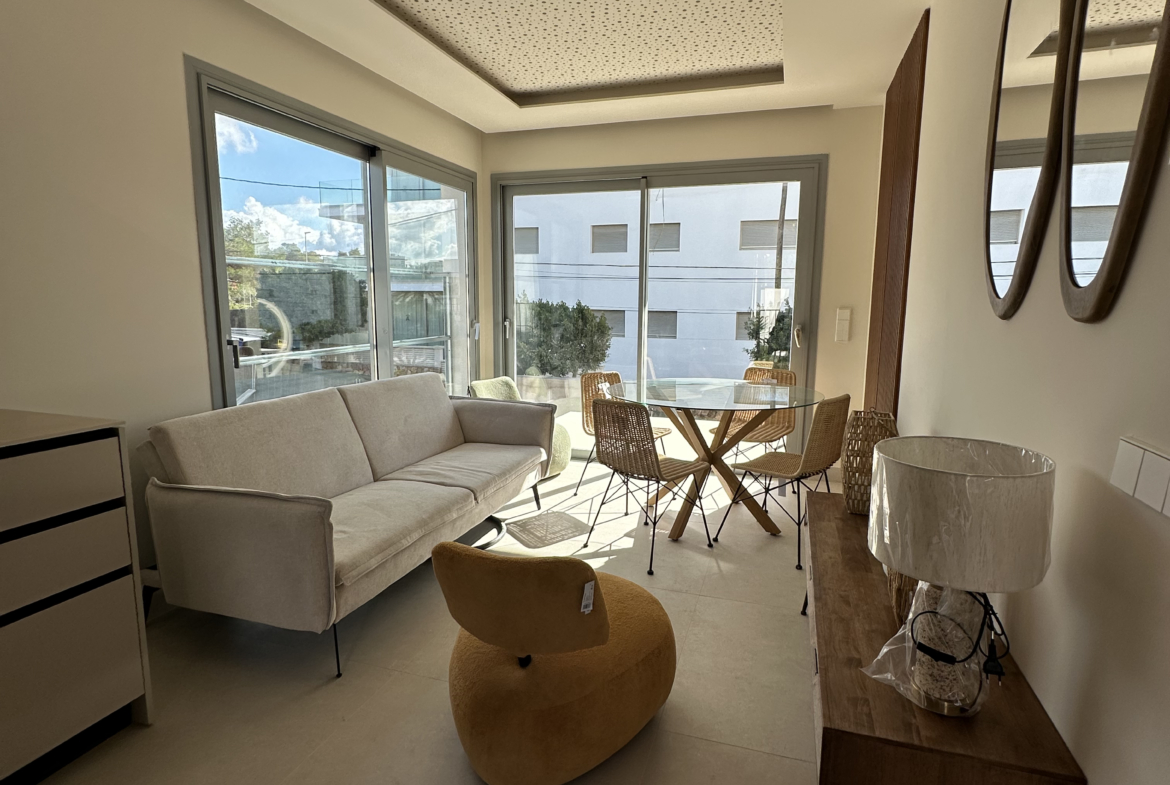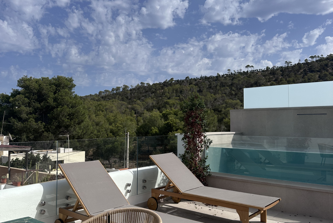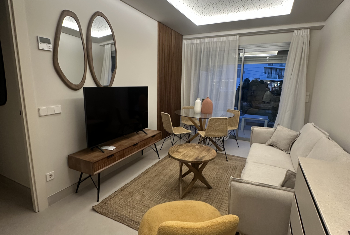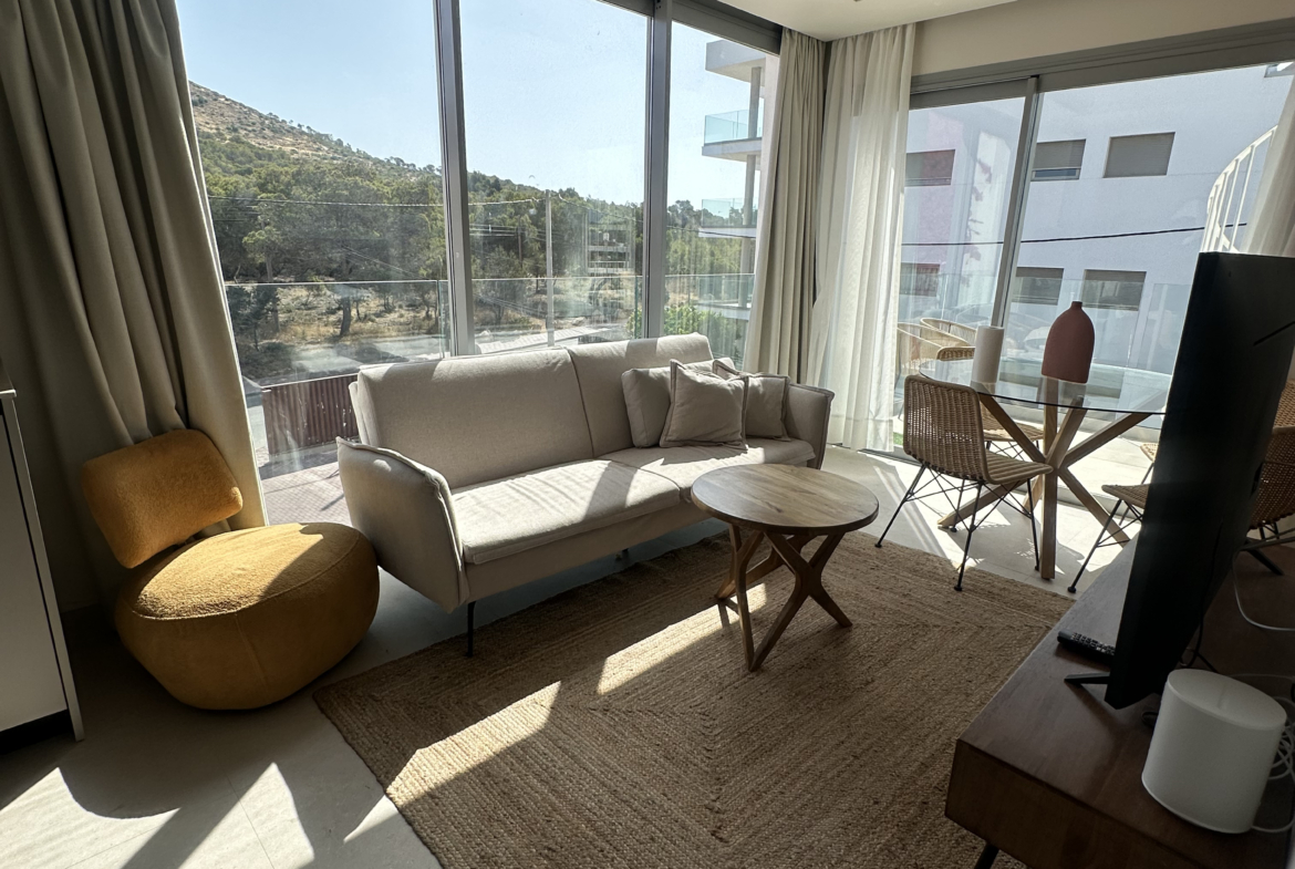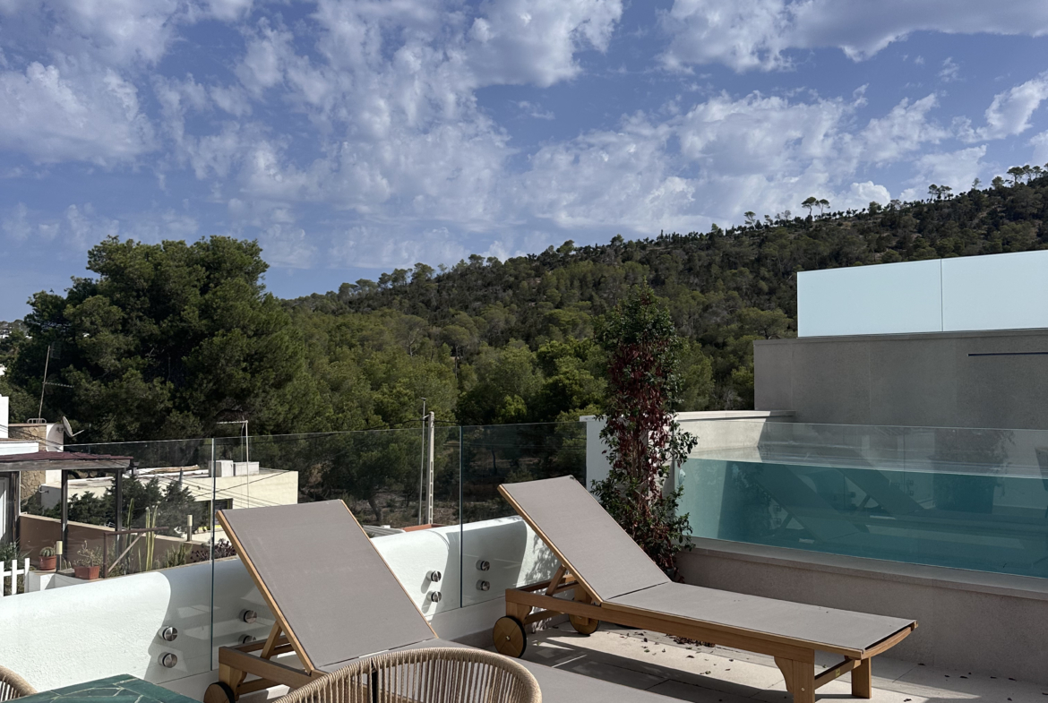 Discover your perfect getaway in this newly built 2-bedroom, 2-bathroom penthouse located in Cala Gracio. Bright and sunny all day, this home offers comfortable living with modern touches and outdoor relaxation.