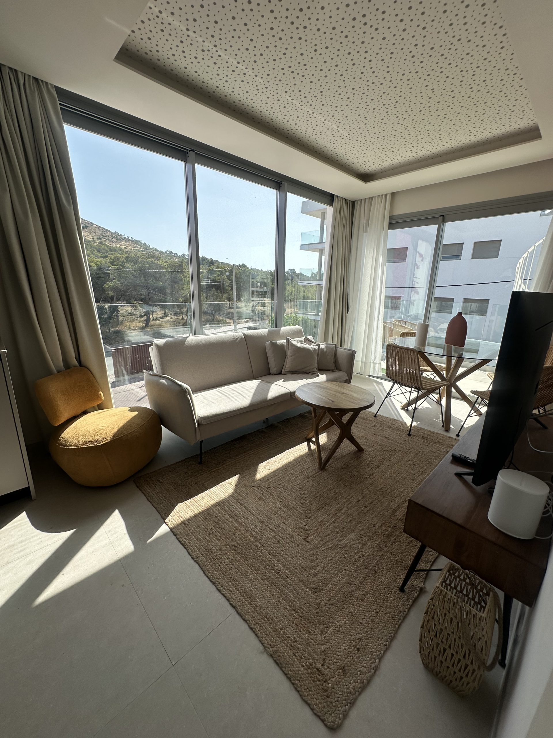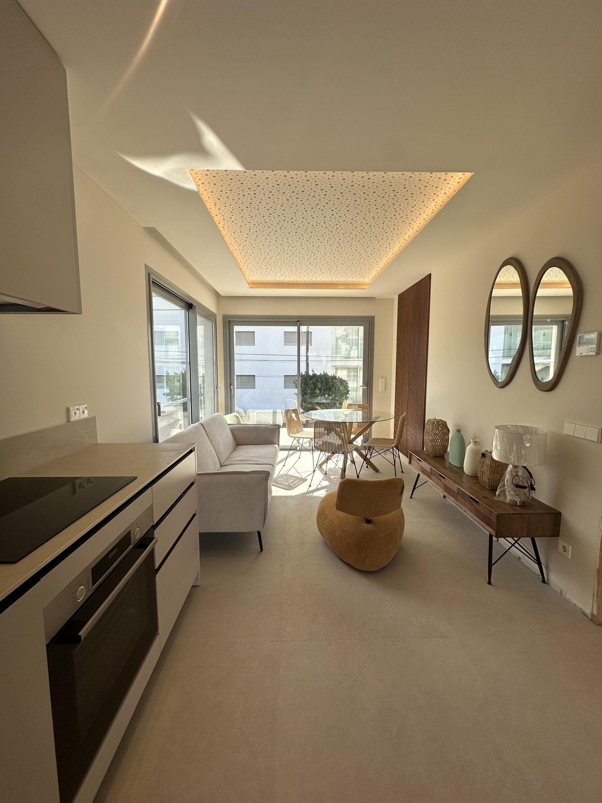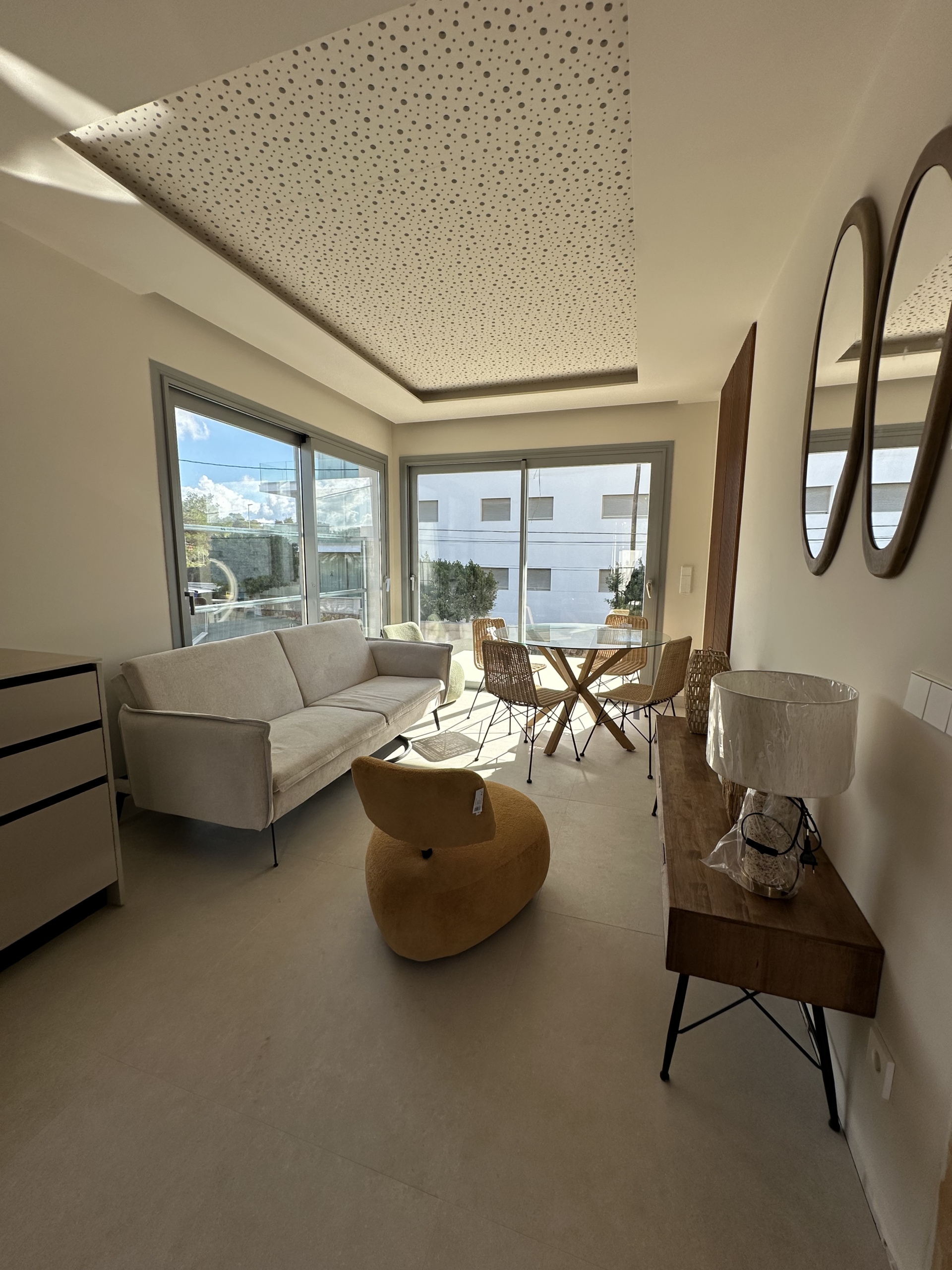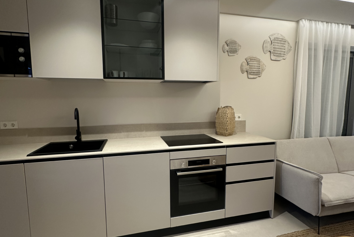 Discover your perfect getaway in this newly built 2-bedroom, 2-bathroom penthouse located in Cala Gracio. Bright and sunny all day, this home offers comfortable living with modern touches and outdoor relaxation.