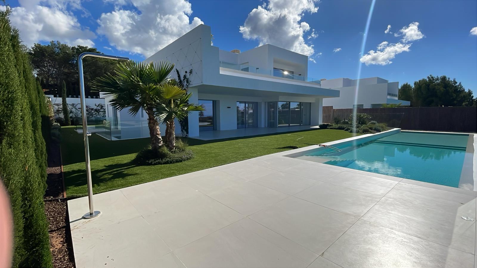 Step into a world of refined elegance with this stunning newly built luxury villa, where modern architecture meets effortless Mediterranean living. South-facing and flooded with natural light, the property enjoys breathtaking sea views and spectacular sunsets from every angle.
