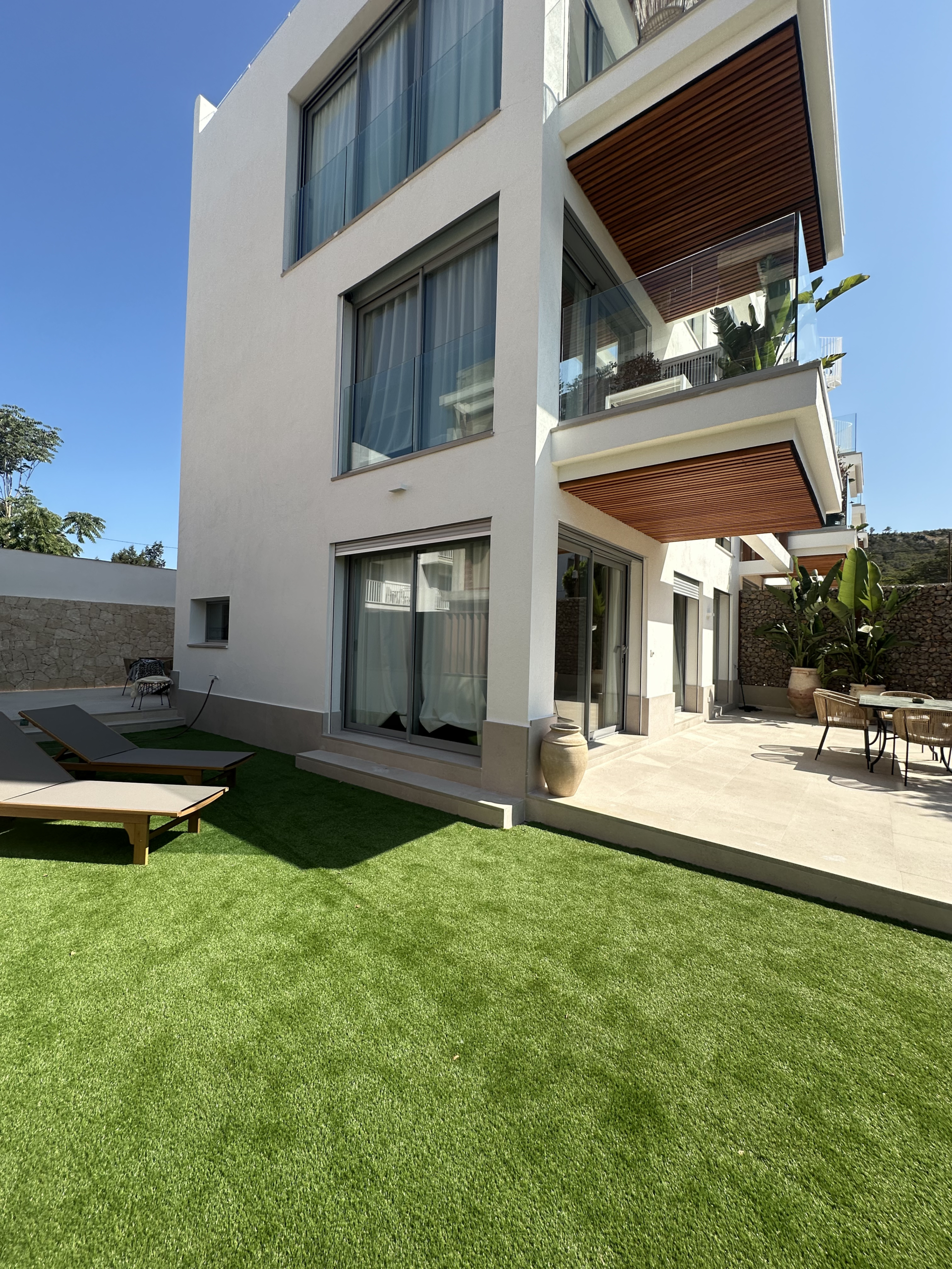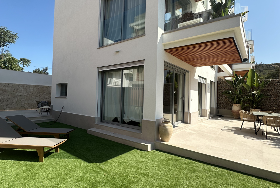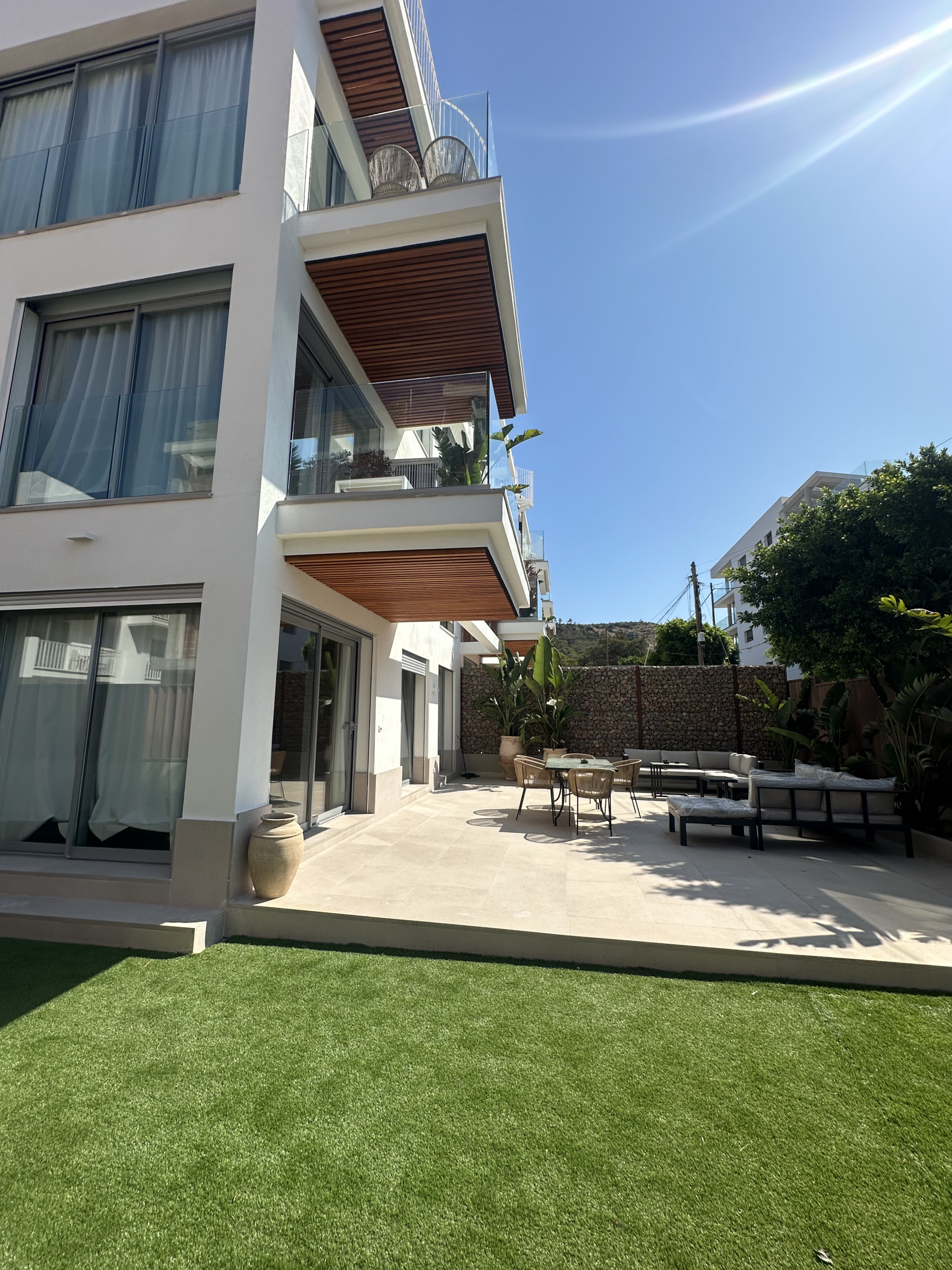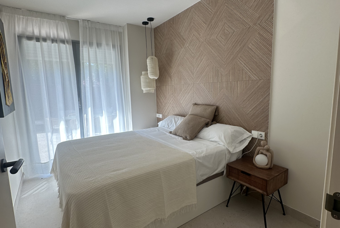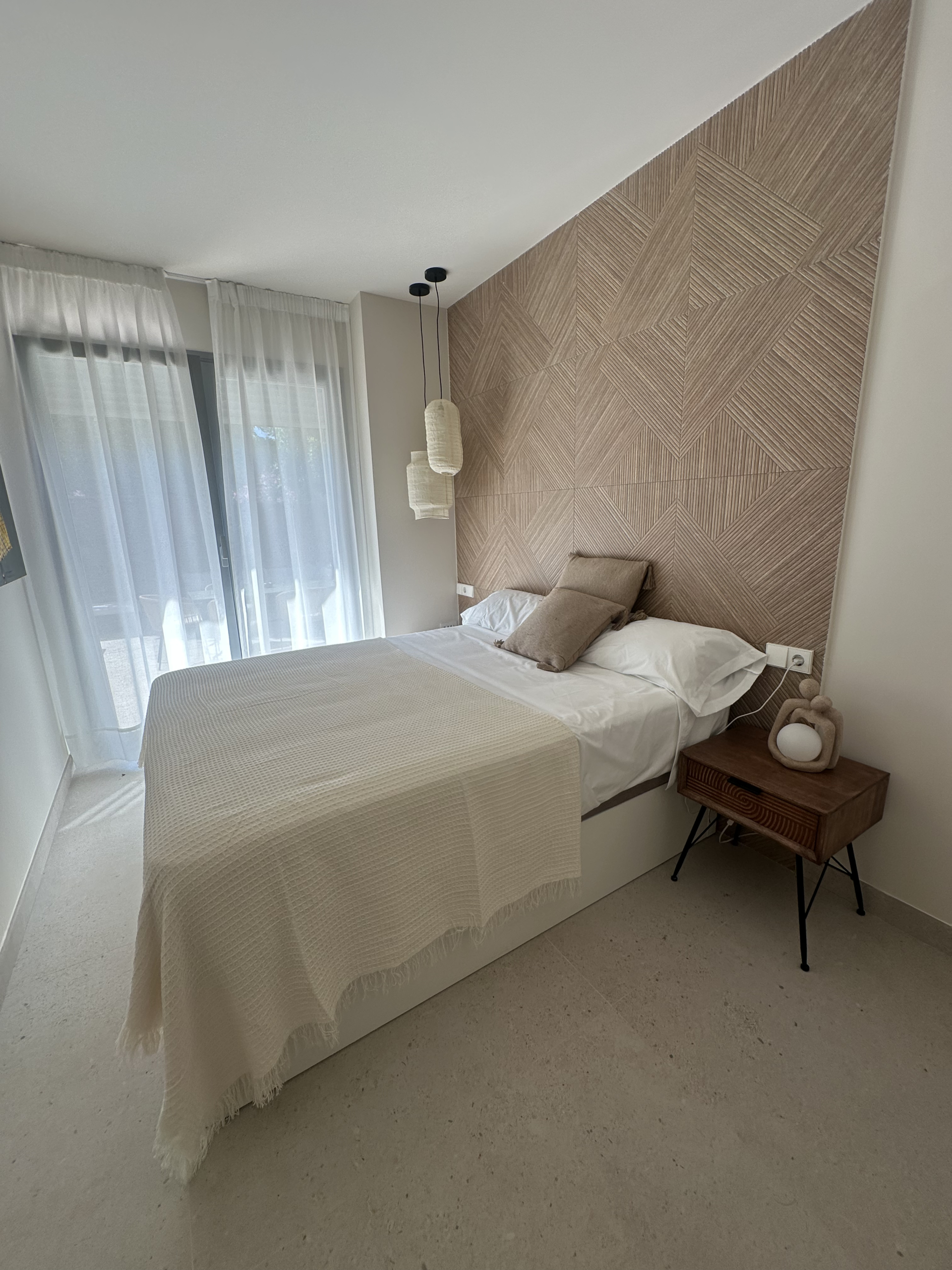 Discover your perfect summer getaway in this newly built 2-bedroom, 2-bathroom ground-floor apartment located in Cala Gració. Bright and sunny all day, this home offers comfortable living with modern touches and outdoor relaxation. Spacious and serene, with direct access to your own lush garden oasis