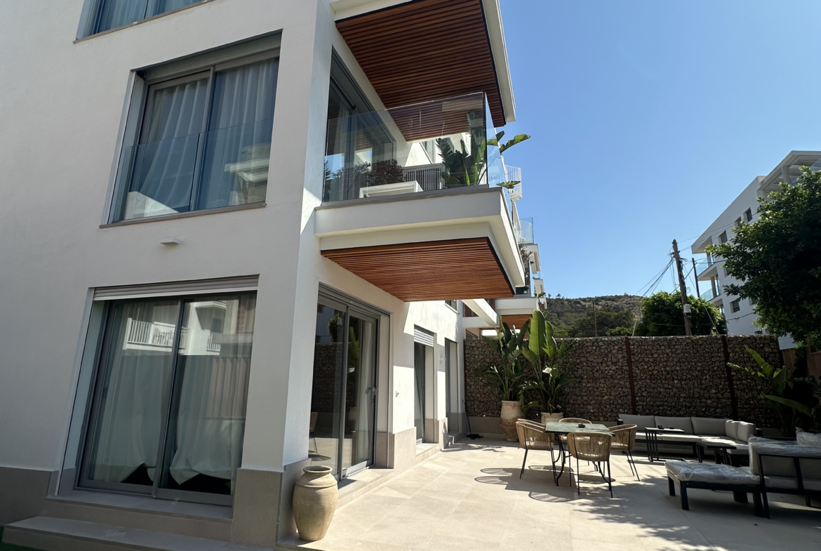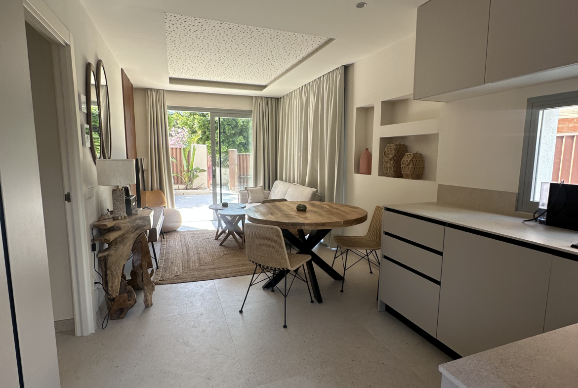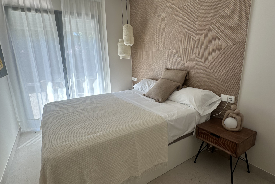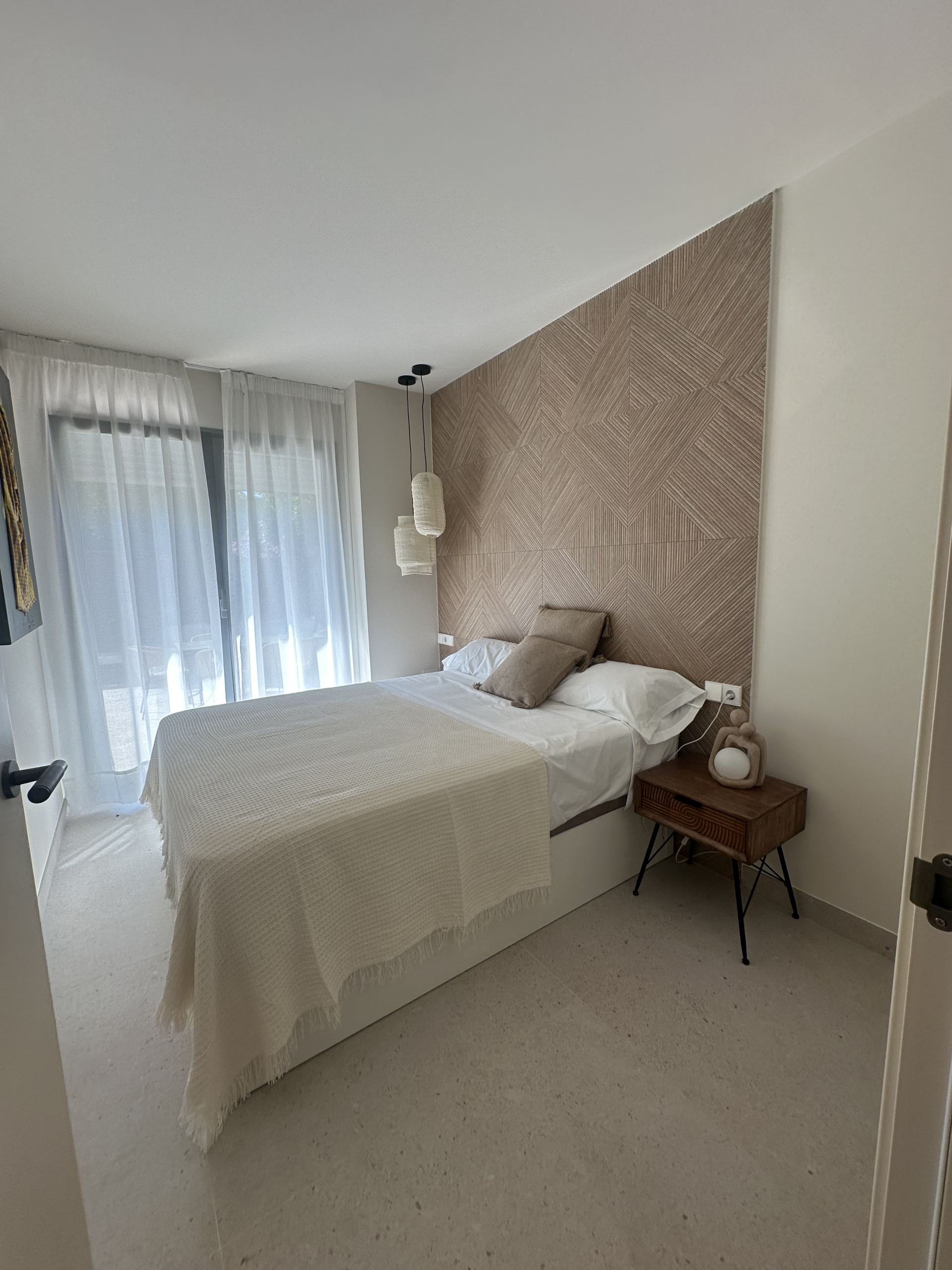 Discover your perfect summer getaway in this newly built 2-bedroom, 2-bathroom ground-floor apartment located in Cala Gració. Bright and sunny all day, this home offers comfortable living with modern touches and outdoor relaxation. Spacious and serene, with direct access to your own lush garden oasis