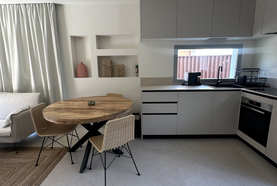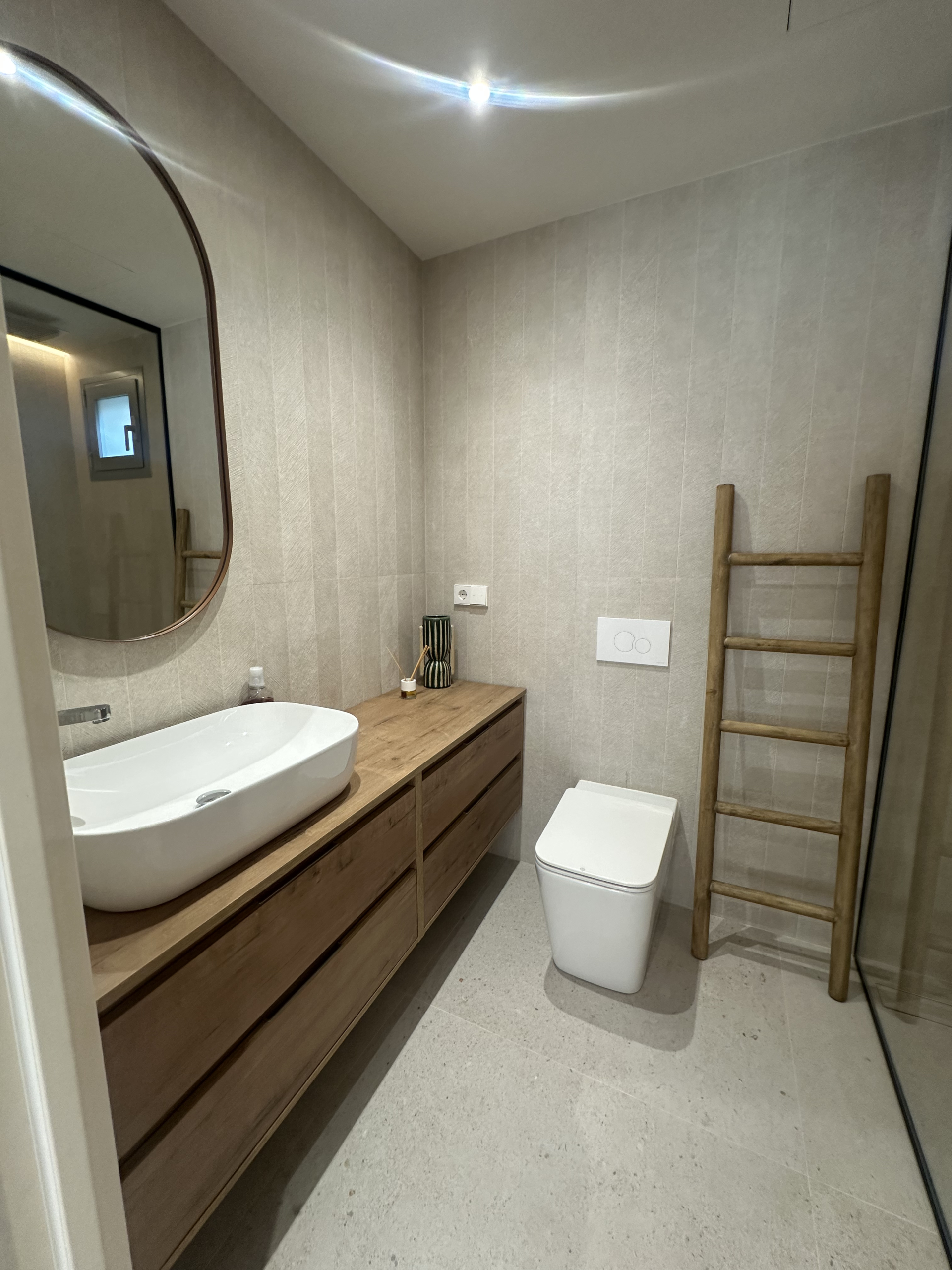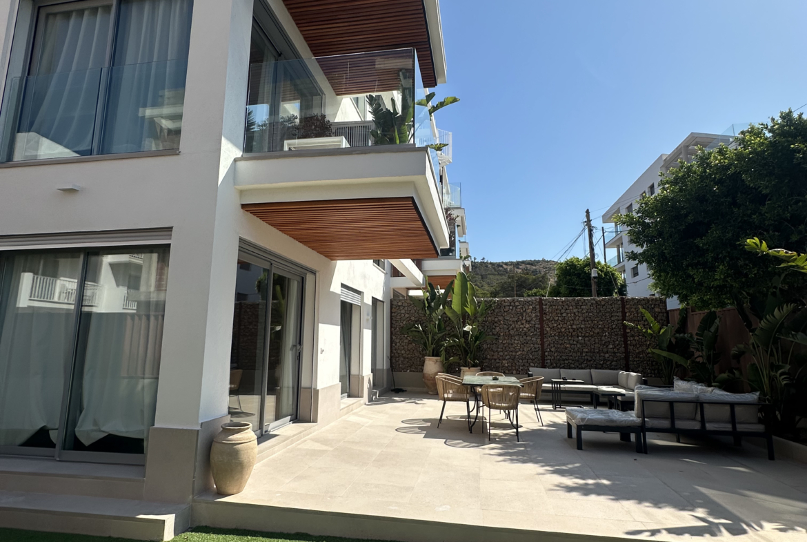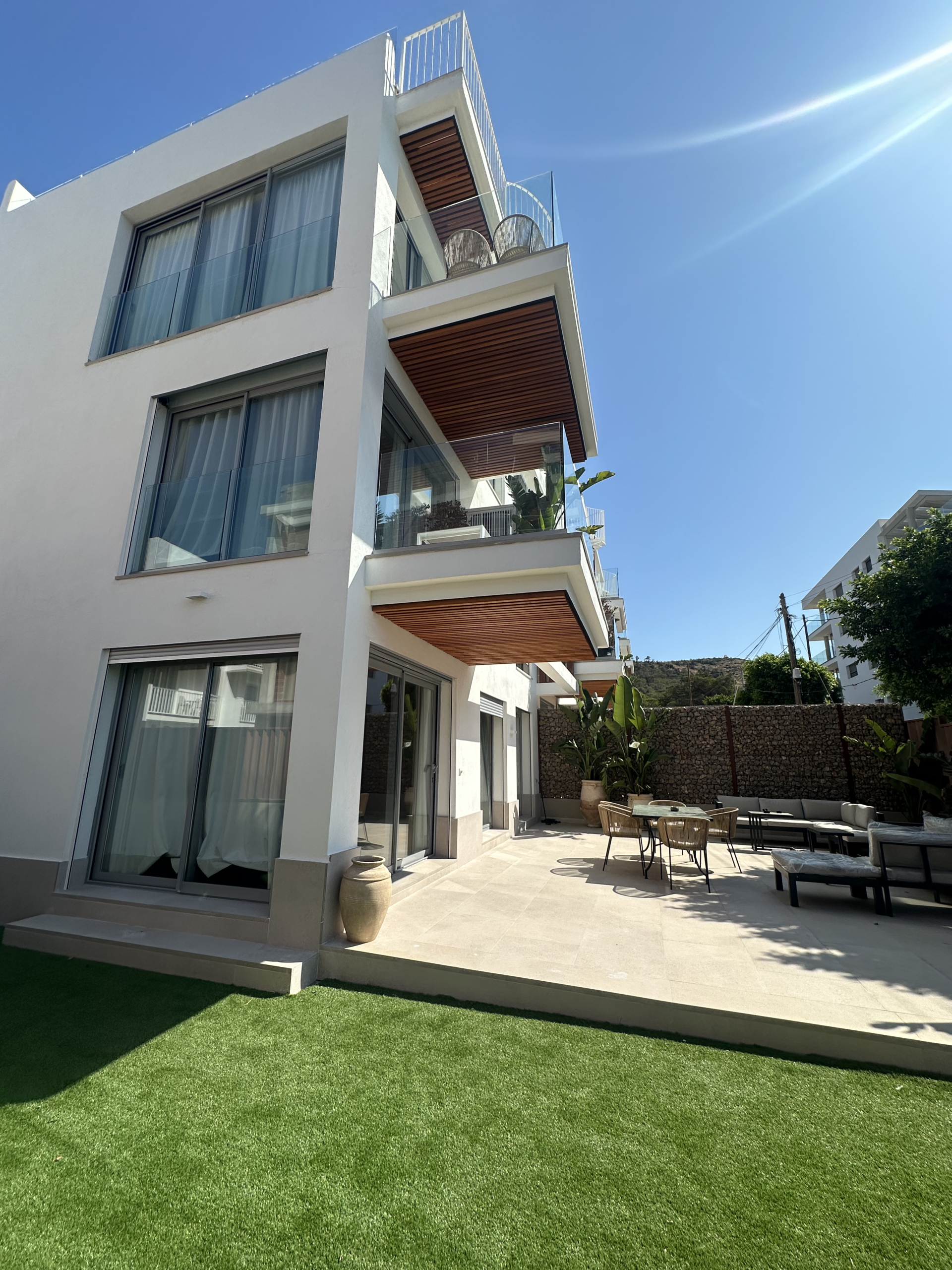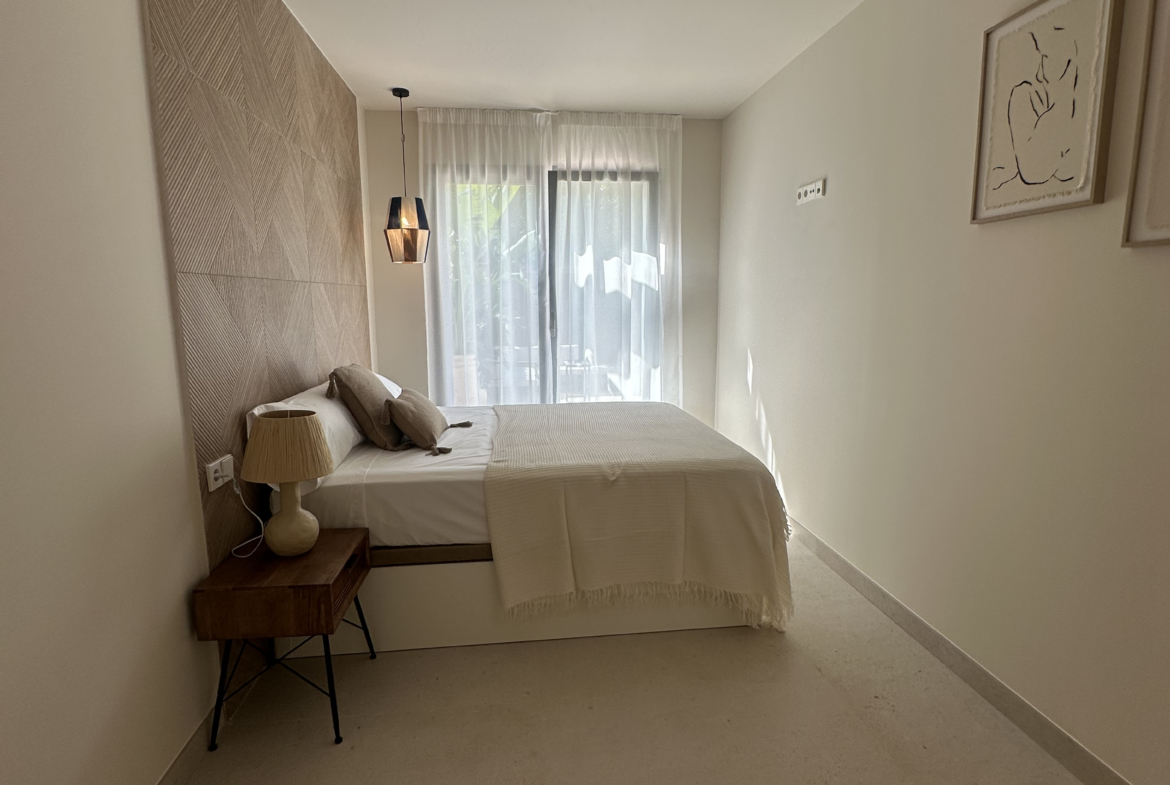 Discover your perfect summer getaway in this newly built 2-bedroom, 2-bathroom ground-floor apartment located in Cala Gració. Bright and sunny all day, this home offers comfortable living with modern touches and outdoor relaxation. Spacious and serene, with direct access to your own lush garden oasis