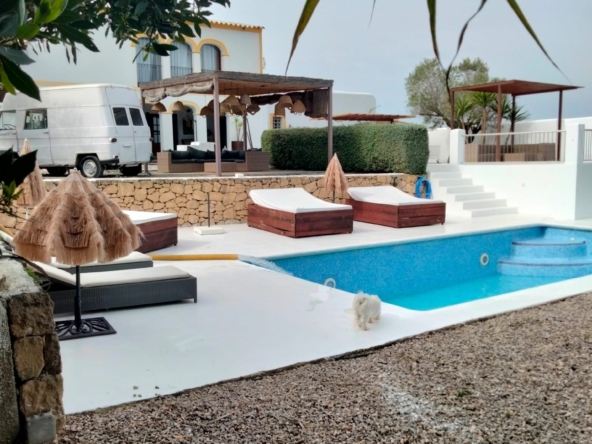 Discover this expansive Ibizan-style house set on a generous 20,000 m² plot, featuring a magnificent 8,000 m² garden. This beautiful property is available for annual rental and is located in the serene area of Santa Ines, known for its picturesque landscapes and tranquil atmosphere.